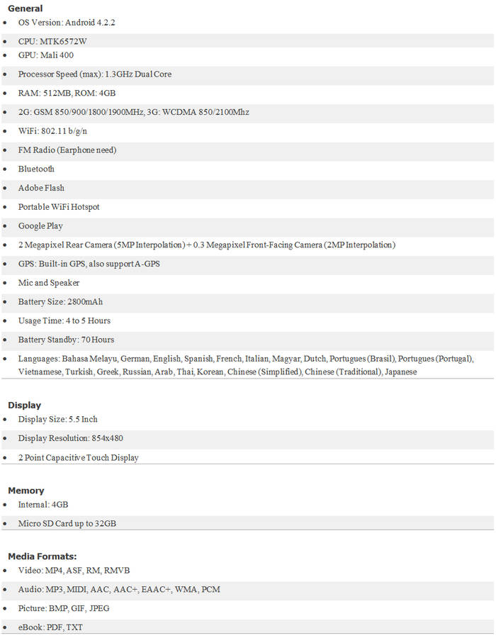Note3 3G Smartphone 5.5 Inch Capacitive Screen Dual Core 1.3G Android 4.2 Dual SIM Standby GPS Pho