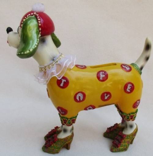 20CM TALL AND 18CM LONG, A SAVINGS BANK MADE OF PORCELAIN AND IN EXCELLENT CONDITION WITH NO CHIPS OR CRACKS - THE DALMATION THAT OUTDID CRUELLA? REFER IMAGES