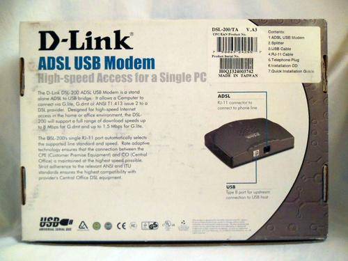D-LINK DSL-200 EXTERNAL ADSL USB WIRED MODEM FOR SINGLE PC BROADBAND CONNECTION 8 MBPS