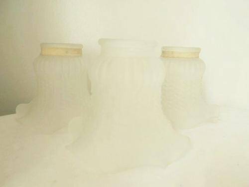 FIVE VINTAGE FROSTED GLASS CHANDELIER LAMP SHADES