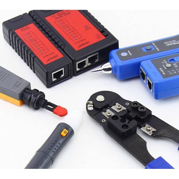 Network Cable Tester: Used to test RJ11/RJ45 cables status; insures pins and cable pairs are correctly connected via LED indicator lights.