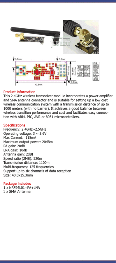 NRF24L01 Wireless Transceiver Module with PA and LNA SMA Antenna