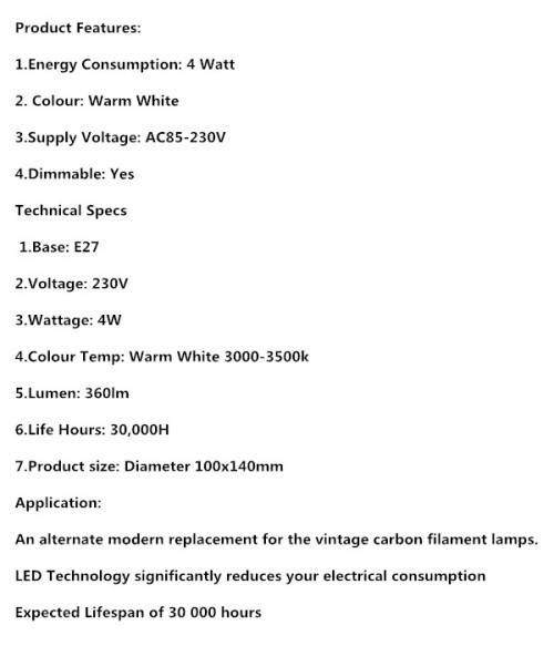 NTF 4W E27 LED Filament Light Bulb Warm White 220V- 2 Years Warranty