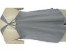 Easy fit vest with elasticated hem underbra. Rounded hem. 3-bound straps come off the front dropped shoulder seam. Connected at the centre back with wrapped binding and are tacked to the back top at intervals.
