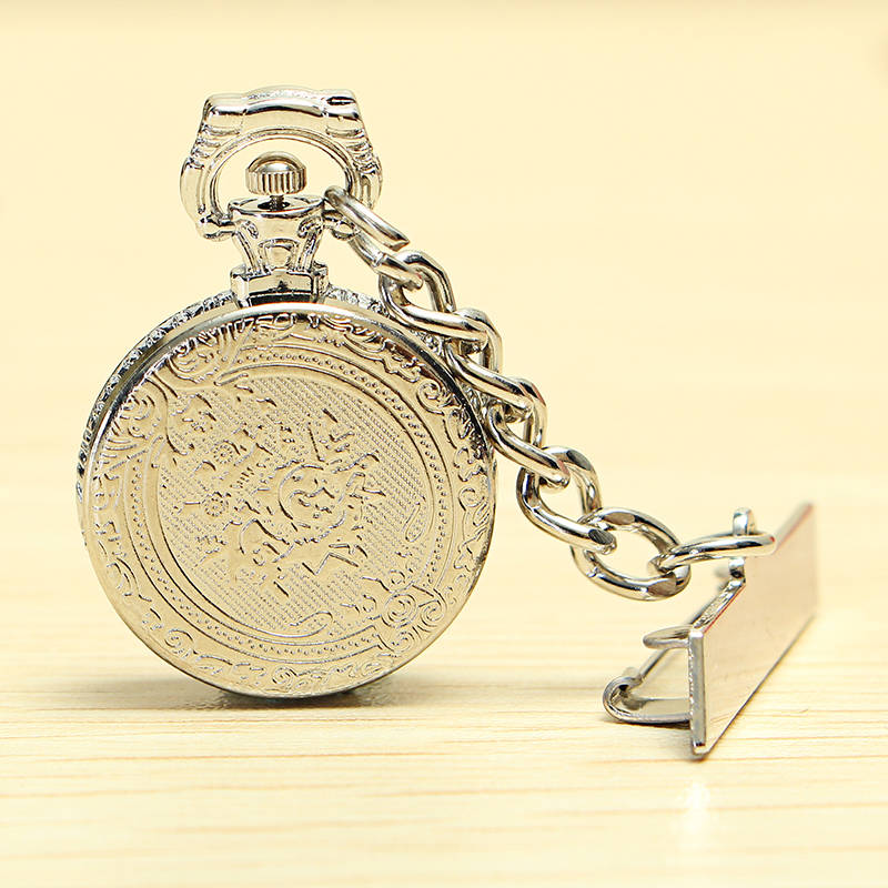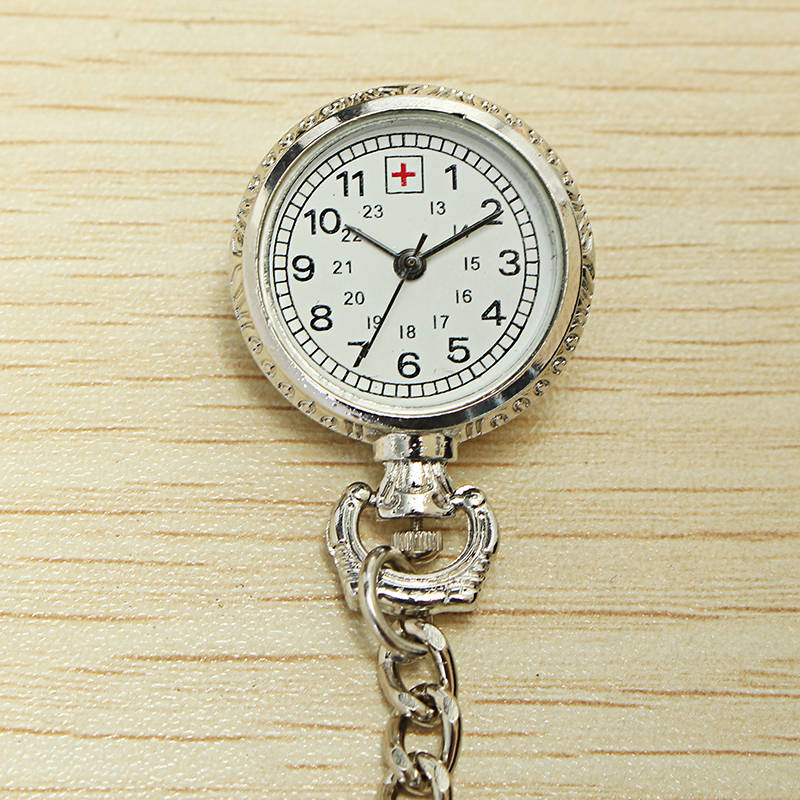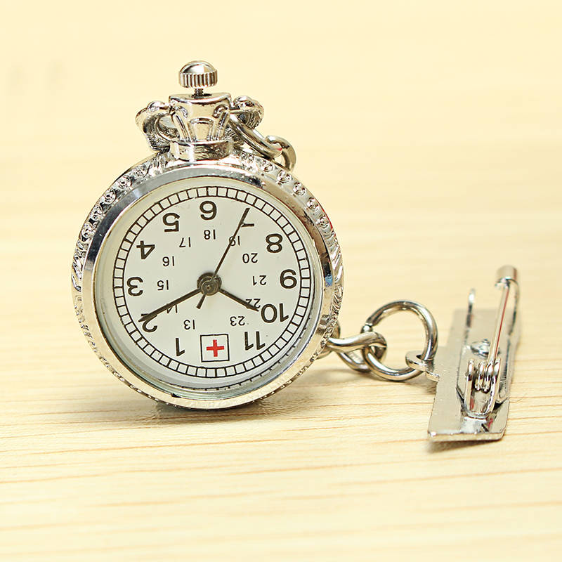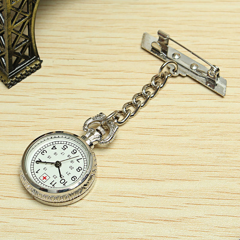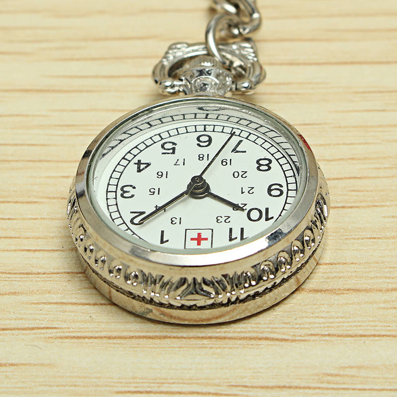 Nurse Silver White Dial Quartz Pocket Watch Clear Cover Pin