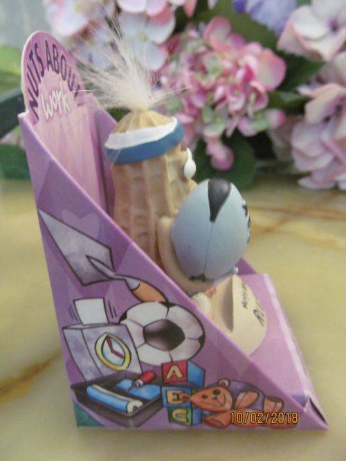 1)- A "NUTS ABOUT....." SERIES FIGURINE - "NUTS ABOUT RUGBY". THE ITEM DEPICTS A NUT (Peanut) HOLDING A RUGBY BALL AND TROPHY ALL MANUFACTURED FROM COMPOSITE MATERIAL (Possibly bakelite) THE FIGURINE IS MOUNTED UPON A SPRING WHICH IS ATTACHED TO A CIRCULAR STAND. 8cm HEIGHT.....6.4cm LEFT TO RIGHT.....6cm FRONT TO BACK