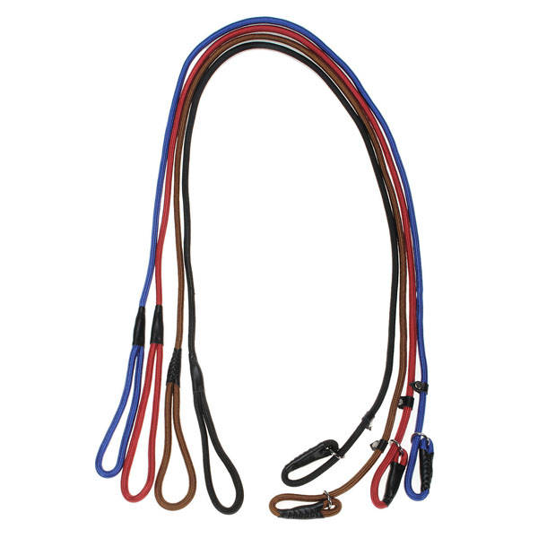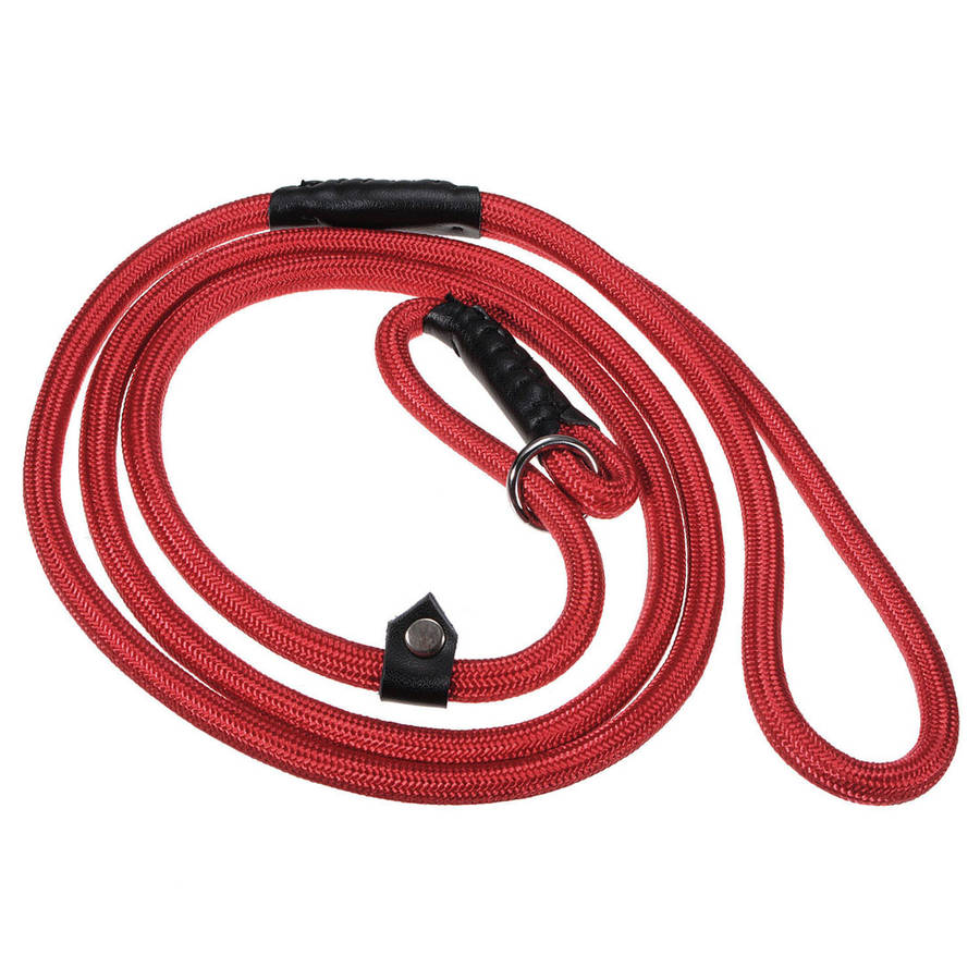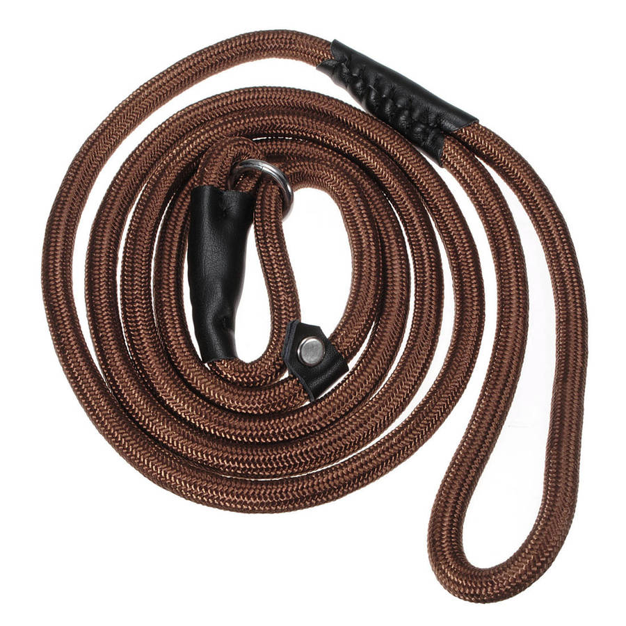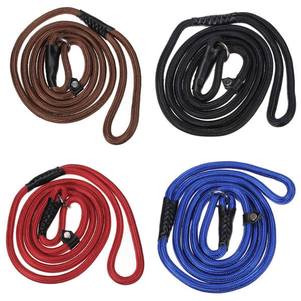 Descrition: Nylon Rope Pet Dog Slip Training P-Leash Walking Leading With Adjustable Collar This leading leash can serve as collar, its circumference is very large and can be adjusted freely. Specification: Material: Nylon, Cotton Rope Color: Brown, Black, Blue, Red Size:150cm(L) X 9mm(T) Package includes: 1 X Training leash