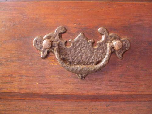 Barley twist oak side board stands 139cm high from the floor to the top of the mirror, it is 122cm long and 50.5cm wide. There are a few water stains and scratches on the top shelf. There are ink stains inside the draws. A key is available.