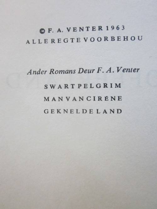 1963 hardeband met stofomslag 351 bladsye, die stofomslag het n paar merkies, die hardeband is goed maar het voorop 2 klein merkies- sien foto onder, geel sellotape merke voor en agter in boek, prystoekenningsplakker voor in boek, pen op bladsye 171,257 en 279 - sien fotos onder, een of twee vlekkies in boek, binding goed- goeie leeskopie - geen oorsese versending