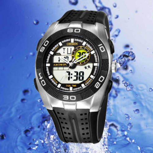 Water resistant 30 meter, 44 mm Case, Analog & Digital movement.