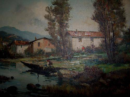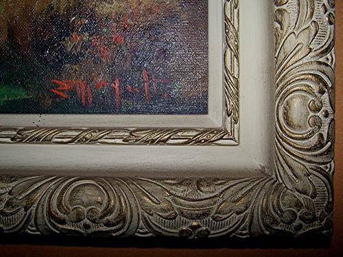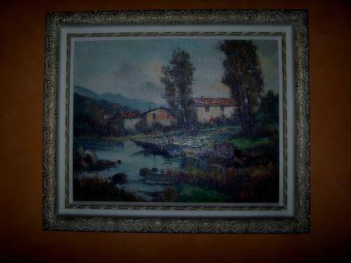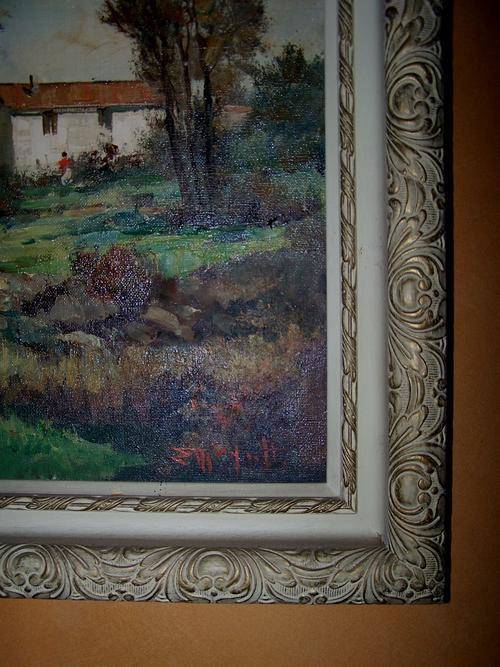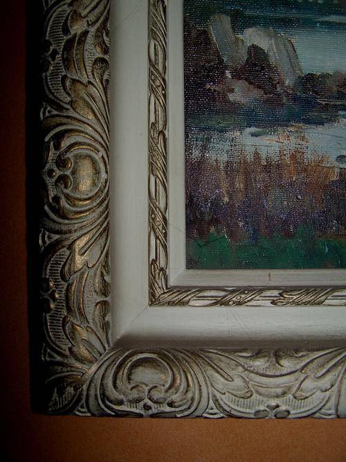 A lovely, tranquil and very pleasing vintage oil on board, signed, beautiful ornate vintage wooden frame.