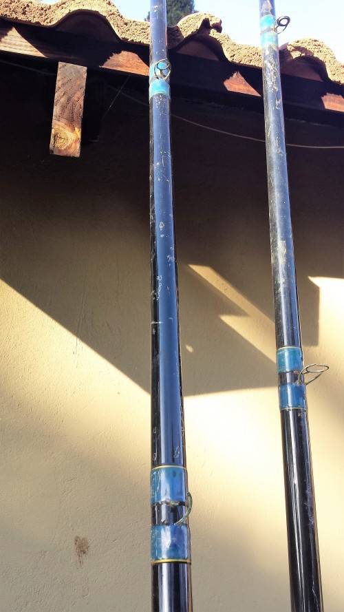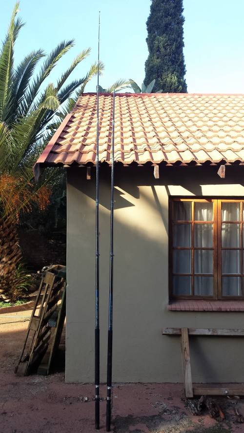 Okuma Surf Rod, One Piece, 4.2m. F2396-5. Counting from the bottom - rings 2 and 3 are broken. I will supply the second rod in the pics for spares, however the 2 ring here is broken as well.