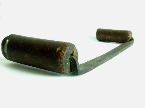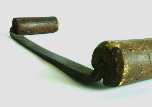 This is a great antique wood worker's tool. Used for gouging of wooden containers. With two wooden handles. Nice antique shape. Measures approx. 30 cm length and 9 cm handles. The Item is a Draw Knife used for making wagon spokes or tool handles or shaping round objects.