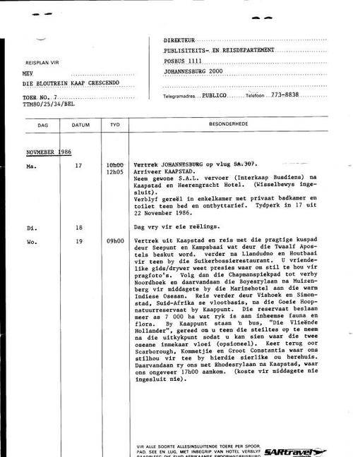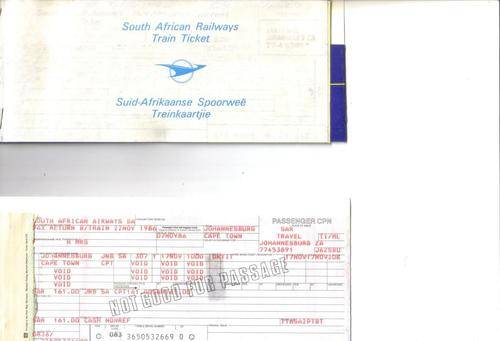 FULL SET OF TRAVEL DOCUMENTS FOR COMBINED TOUR ON SAA AND THE BLUE TRAIN