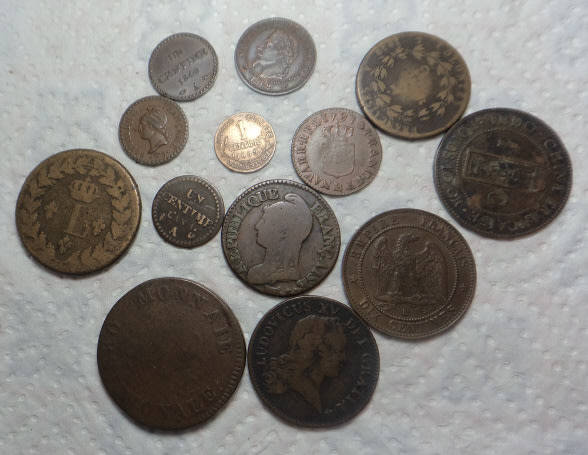 Thirteen coins - oldest dating from 1719 (King Louis 15). Some in better grades.