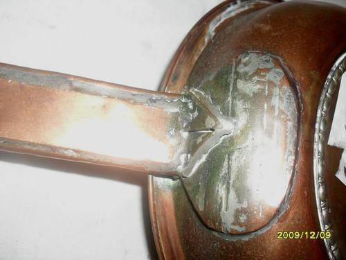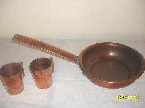 OLD COPPER PAN WITH 2 MUGS. IN GOOD CONDITION. DIAMETER OF PAN 21 CM. LOVELY ORNAMENTS...A MUST FOR THE KITCHEN