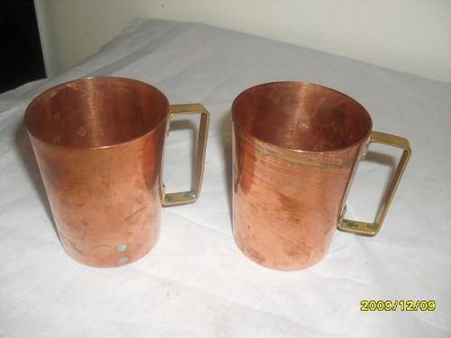 OLD COPPER PAN WITH 2 MUGS
