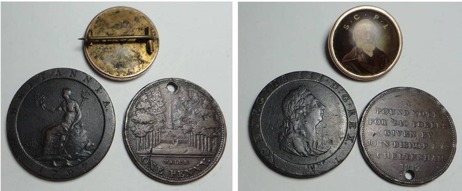 Old Georgian Cartwheel Penny, Token & Victorian Badge