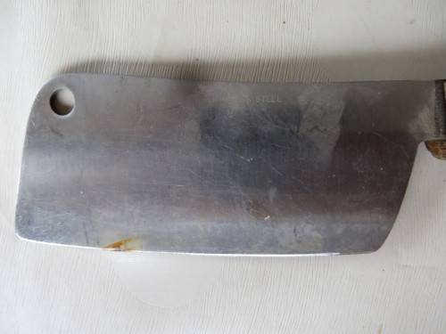 OLD HOUSEHOLD MEAT CLEAVER - BLADE 120 X 55 MM - 240 MM LONG - AS PER SCAN