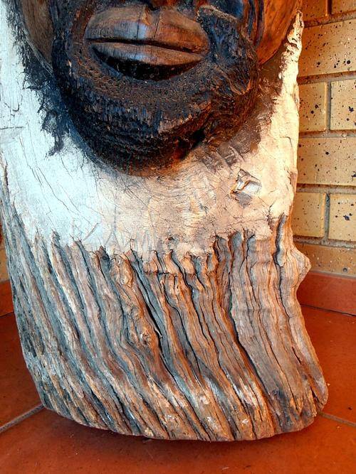 Large, massive old African carving. Nice head carved into a very heavy piece of ironwood, this must weigh between 70-80kg if I had to guess from trying to pick it up. Height is 105 cm and width 65 cm. You just do not get these carvings in this sort of wood anymore.
