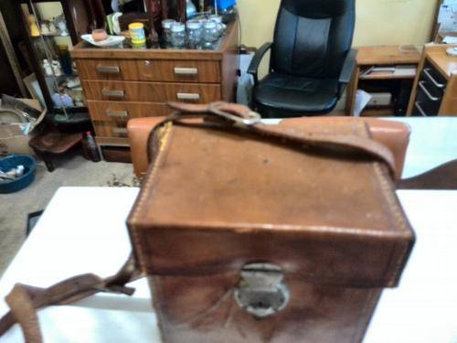 Old leather camera bag. size:height 21cm. width 14cm. depth 11cm.