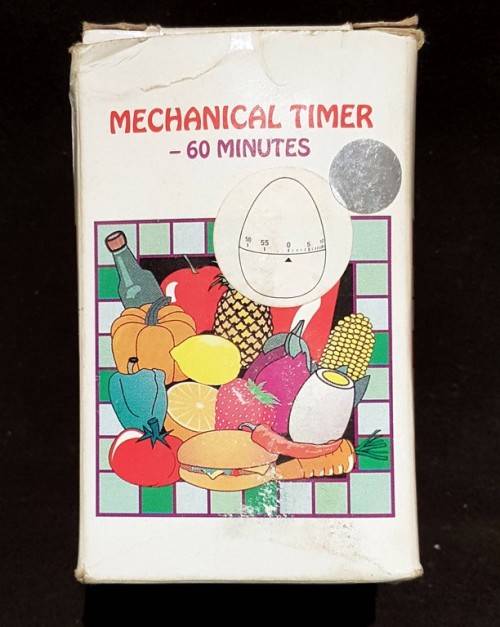 An old mechanical egg timer in its original box. It measures 7.5cm high. This piece is in good condition and will make an wonderful addition to your home. Own this piece today. Bid now!!!