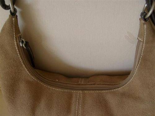 LOVELY 'OLD NAVY' TAN SUEDE LEATHER HOBO HANDBAG WITH BROWN LEATHER SHOULDER STRAP. ZIP IN PERFECT WORKING CONDITION. HAS A ZIP COMPARTMENT INSIDE THE HANDBAG.