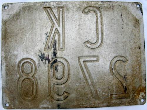 OLD NUMBER PLATE : MALMESBURY (CK2798) : 28X 20.5 CM