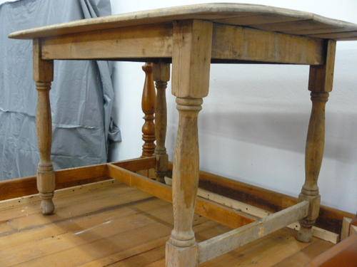 THE LEGS ARE ORIGON PINE, THE TOP I HAVE NO IDEA ALTHOUGH IT LOOKS LIKE ORIGON. THIS IS A BIT IF A MISH MASH TABLE BUT HAS TO MUCH CHARACTER.