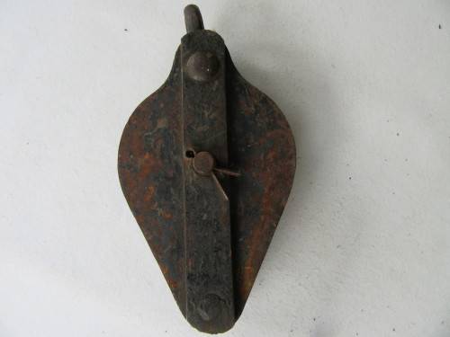 OLD PULLEY - APPR. 100 X 170 X 30 MM - HOOK IS MISSING - AS PER SCAN