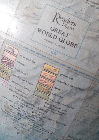 MARKED: "READER'S DIGEST GREAT WORLD GLOBE; REPLOGLE GLOBES INC., MADE IN U.S.A"