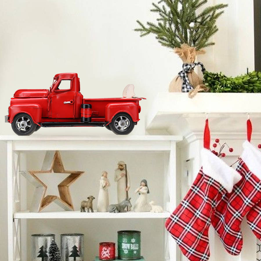 Name: Red Metal Antique Truck Model Vintage Style Christmas Party Decoration