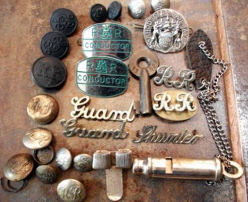 CONDITION AS SHOWN. 14 X BUTTONS, 2 X RR CONDUCTOR, 1 X RHODESIAN RAILWAYS BADGE, 2 X RR BADGES, 2 X GUARD, 1 X SHUNTER, 1 X KEY, 1 X WHISTLE ON CHAIN, 1 X CLIP WITH SPRING HOLDERS ( POCKET PEN HOLDER?????)