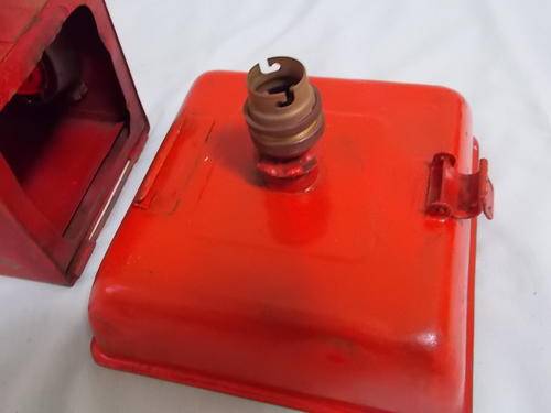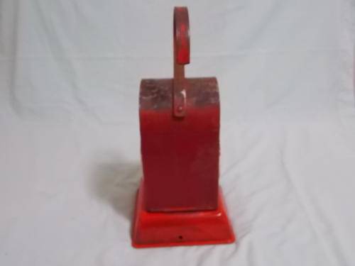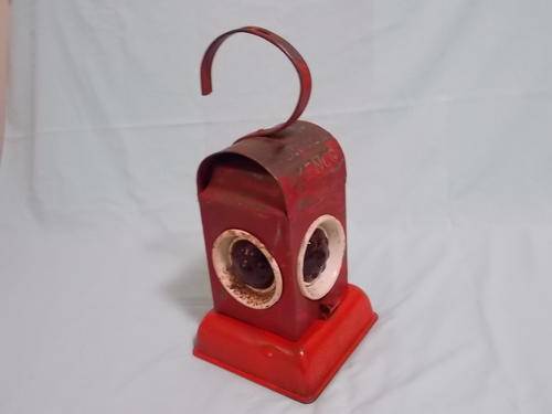 These paraffin lamps were used to indicate danger barriers at night. It has 3 red lenses. This unit has been converted to electricity although it need to be rewired. The lamp is partially stripped of paint and needs to be repainted. It bears the inscription "RENYONS PATEND NUMBER 580638 AKENCO REG TRADE MARK". The tank has a square measurement of 180 x 180 mm. while the lamp itself measures 125 x 125 x 210 mm. The total height is 260 mm without the handle. As per photos. Please note: bobPay EFT only Postage and packaging: R40.00 + 3% insurance (if required). Combined items to be advised as per Post Office rates.