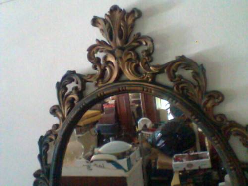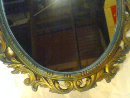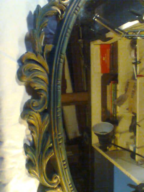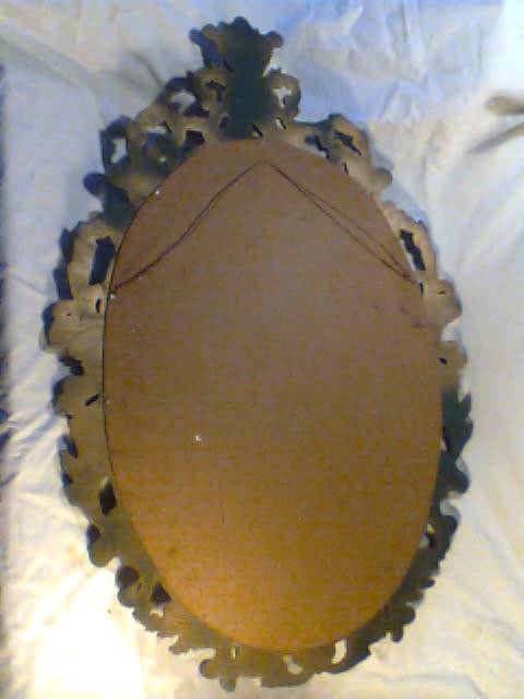A large Rococo style Beautiful vintage Oval ornate gilt wall mirror, ideal for that special room. The gold has a little tarnishing from age which gives a lovely patina. Size: 925mm Tall x 625mm Wide.The back has a heavy copper twine cable.