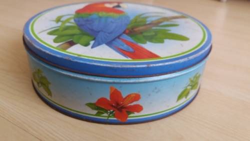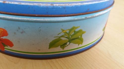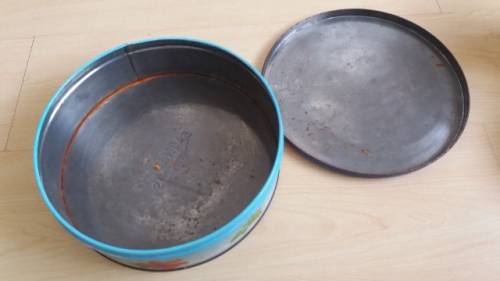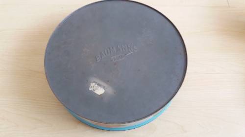 Old rustic Baumann Biscuit Tin. size: width 27cm. depth 7cm.