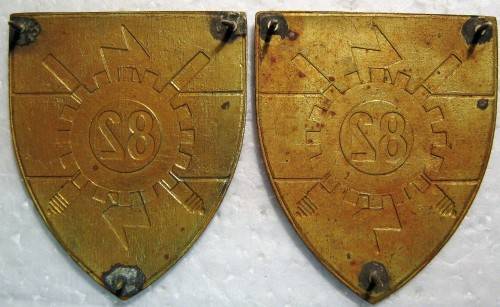 OLD S.A.D.F. - PAIR OF 82 T STORES DEPOT GOLD TYPE FLASHES WITH PINS IN GOOD CONDITION