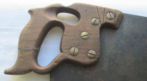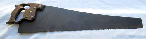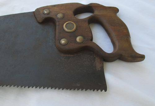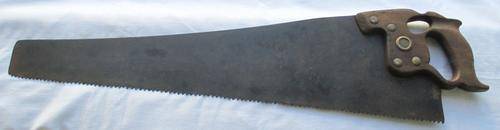 OLD SAW BY DISSTON U.S.A. Please see condition as per pictures. Dimensions:length,from point of blade to end of handle:74.3cm, width,widest part of saw:19cm, length of blade: 66.1cm