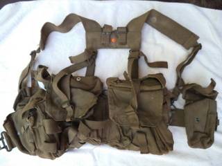 OLD SOUTH AFRICAN ARMY WEBBING WITH 2 KIDNEY POUCHES AND 4 AMMO POUCHES