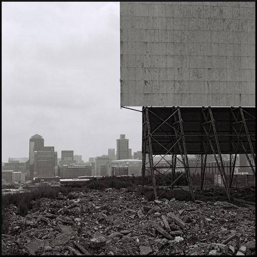 This is a black and white print by fine art photographer, Hilton Hamann of the remains of the old Top Star Drive-in just before it finally disappeared forever. It was once a famous city, landmark.