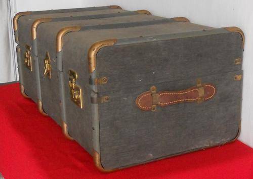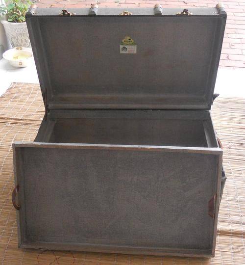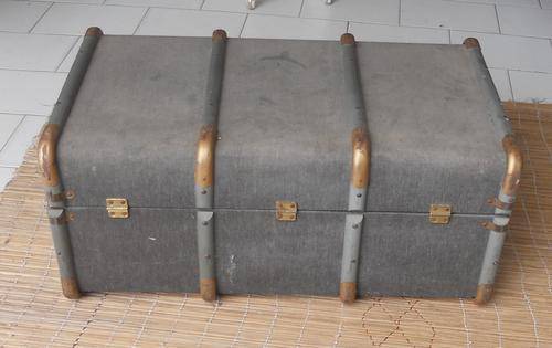 OLD TRAVELLING TRUNK / SUITCASE WITH WOOD AND METAL TRIM