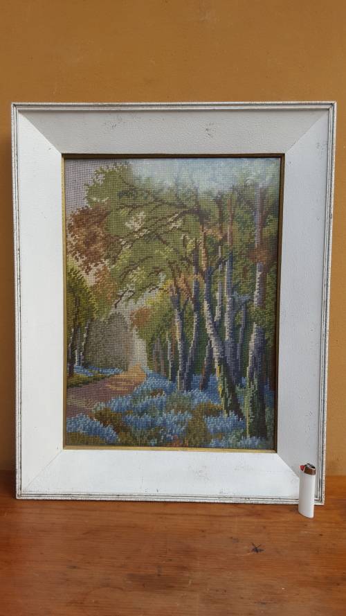 Stunning tapestry, well made, nicely framed, with glass and in a lovely condition. These can be used to sew into clothes, hung in your home or for whatever you choose. Frame may need to be touched up a bit. Still a lovely piece and hung in the right place will look awesome.