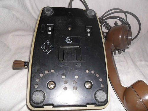 OLD TWO TONE CRANK HANDLE TELEPHONE - OLIVE GREEN AND BROWN - NO CHIPS OR CRACKS - THIS PHONE HAS NOT BEEN TESTED - SUPERFICIALLY IT SEEMS FINE - PLEASE VIEW PHOTOGRAPHS - POSTAGE R45
