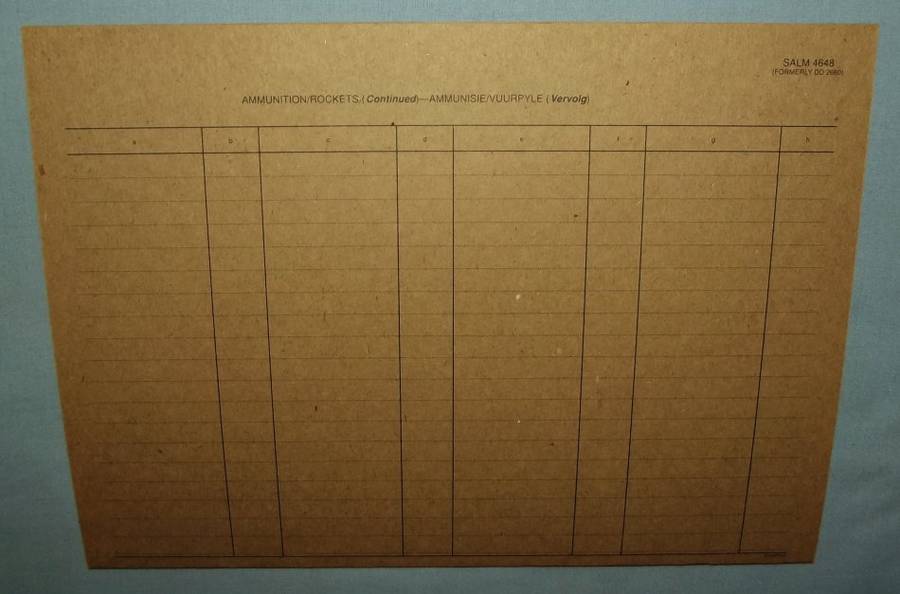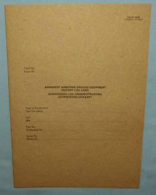 Old Unused SAAF Armament Airborne / Ground Equipment History Log Card Folder.