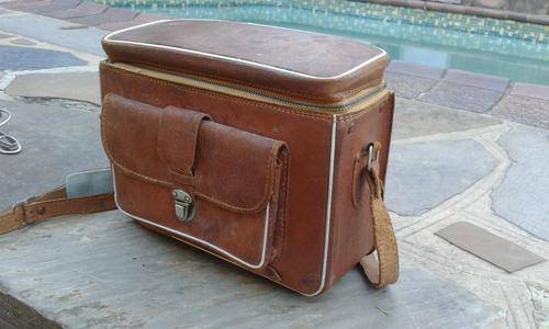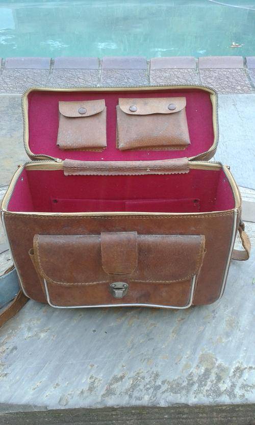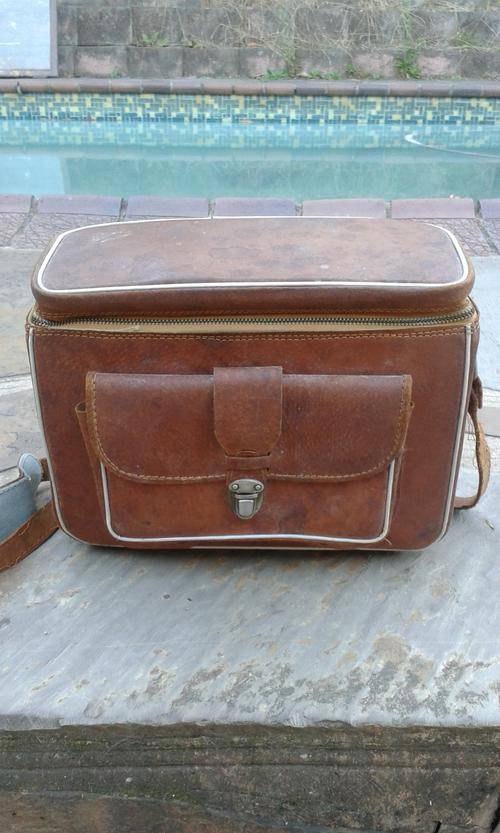 Super old and interesting camera case/box. Everything on the case is all original, from the strapping to the inner and outer pouches.