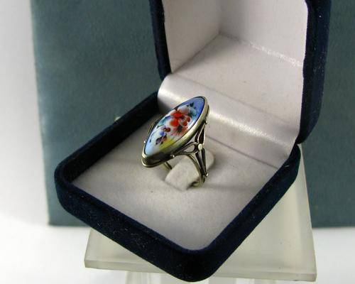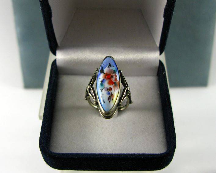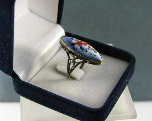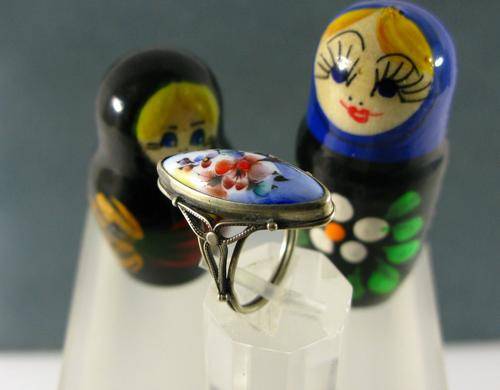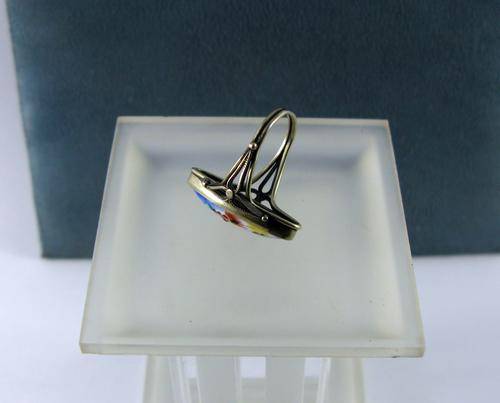 Old Vintage Original Russian Enamel Silver Ring. Hand Made, Hand Painted. Rostov City Russia.