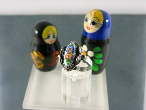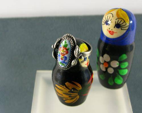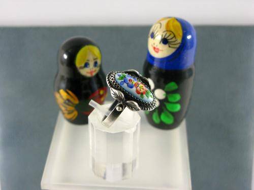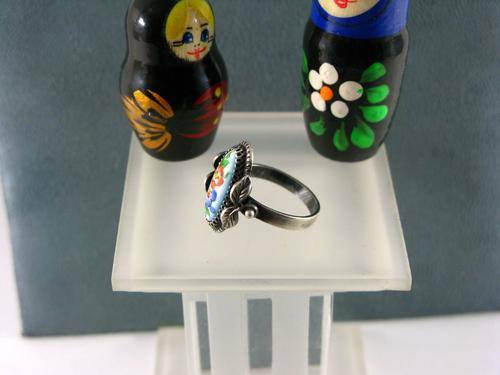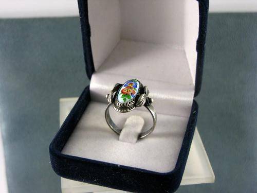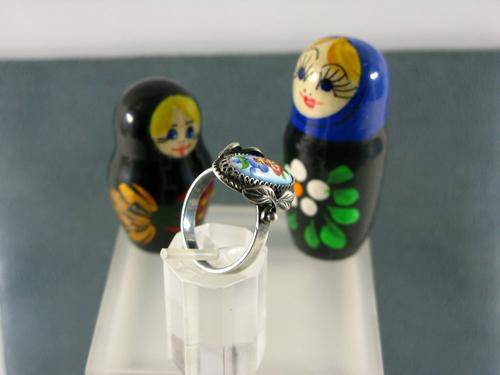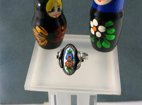 Old Vintage Original Russian Enamel Silver Ring. Hand Made, Hand Painted. Rostov City Russia.