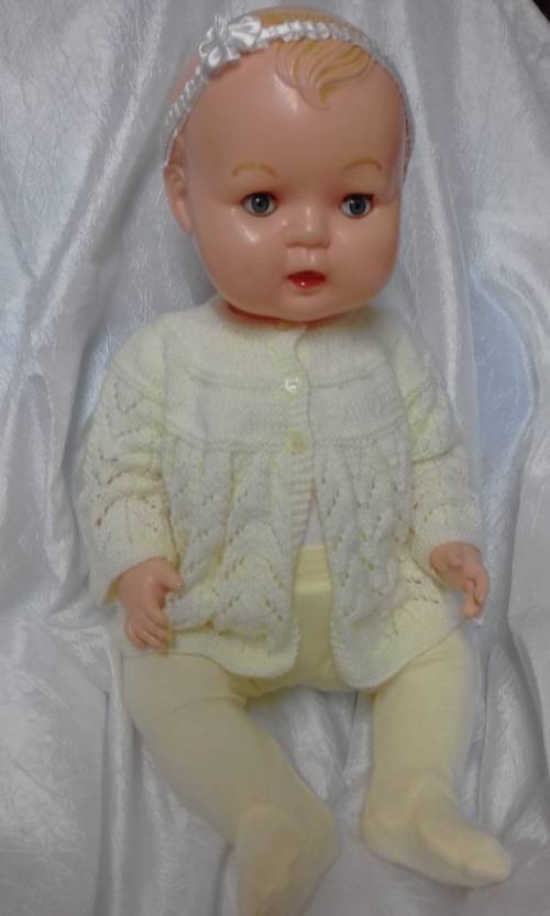Old 60 cm vintage plastic doll, in good, clean condition, to add to your collection. Comes dressed as shown. Crier present but not working. Postage and packaging is R90.00.