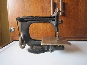 Stunning chain stitch built sewing machine, manufactured in 1912. It has had some scratches and scrapes and paint wear but still looks great, registration no 24-7 and then another set of numbers AG560633, this is a minature and size is 25cms L, 22.5cms H and 15cms W. I have no idea this machine works as I dont use them,it does seem to have everything including the needle. Item is very heavy so would cost 150.00 for postage.