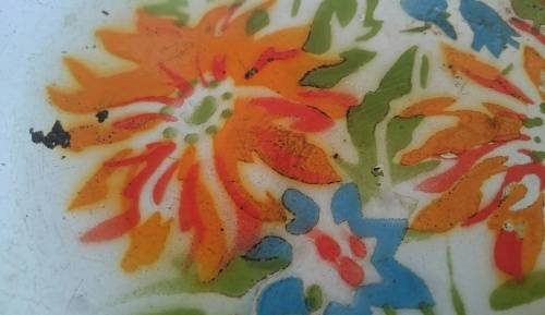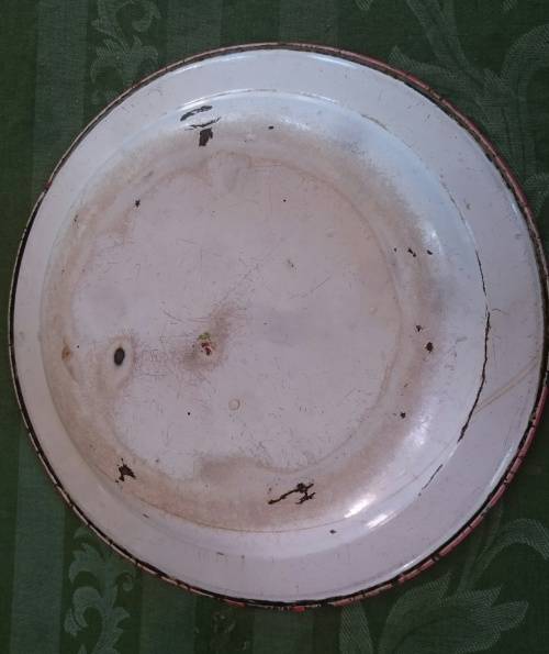 Old white enamel plate with flower patterns, without holes, but lots of character!